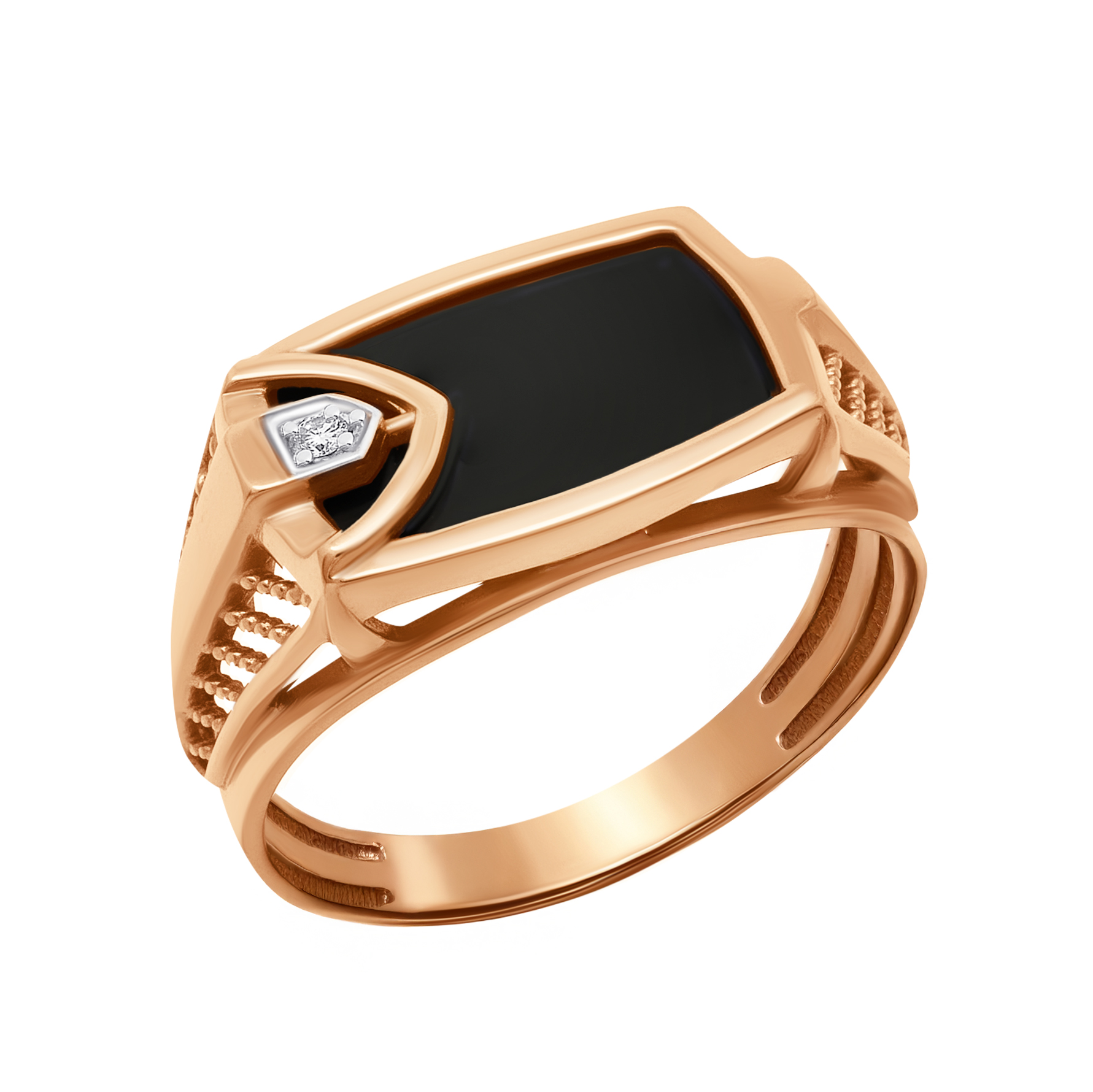 Кольцо-печатка из золота с ониксом и фианитами