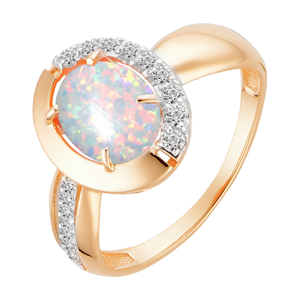 Кольцо из золота с опалом и фианитами