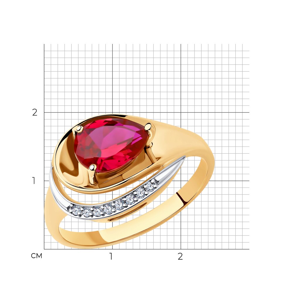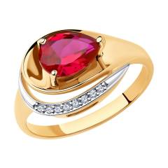 Кольцо из золота с рубиновым корундом и фианитами