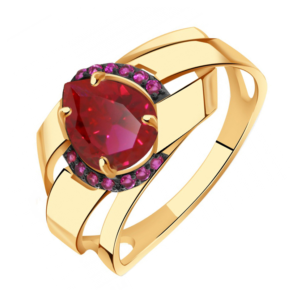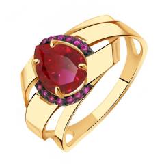 Кольцо из золота с рубиновым корундом и фианитами