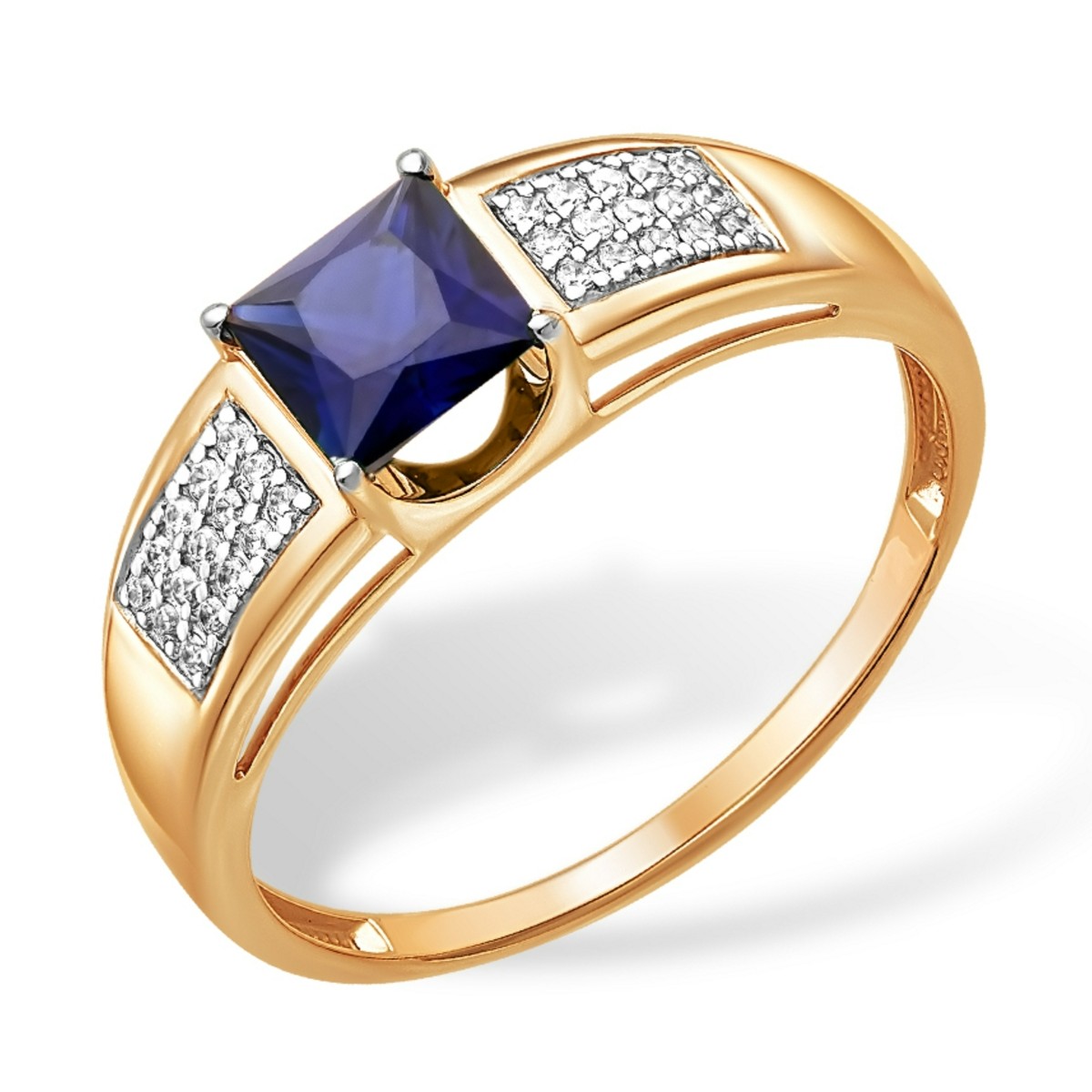 Кольцо из золота с сапфиром и фианитами