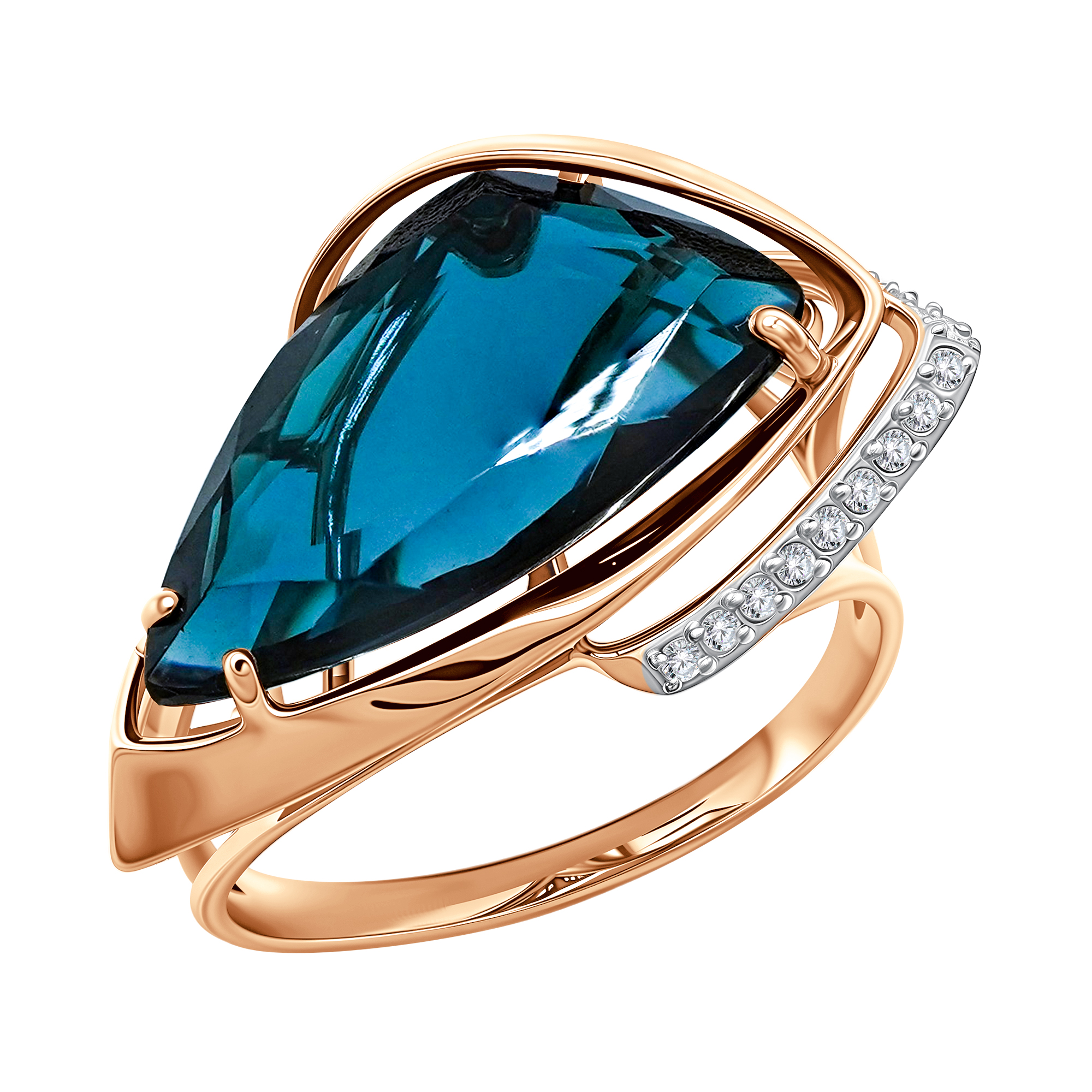 Кольцо из золота с ситаллом топаз London и фианитами