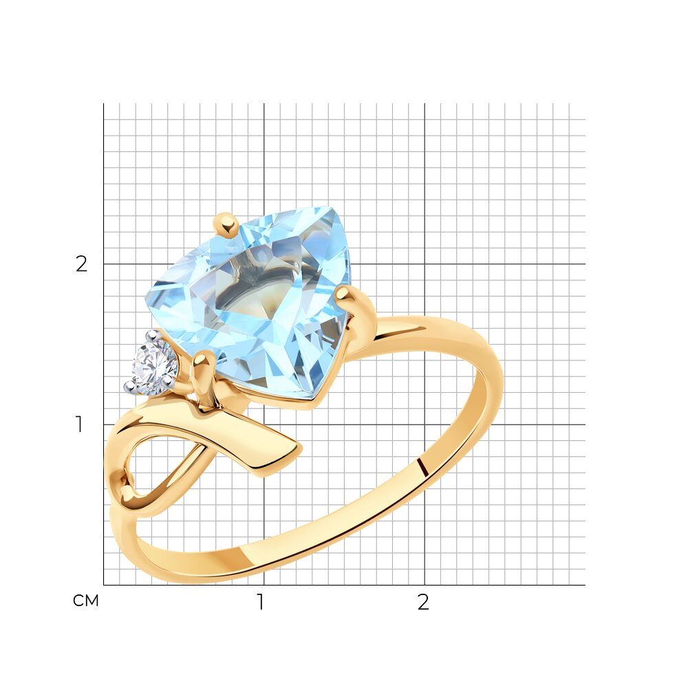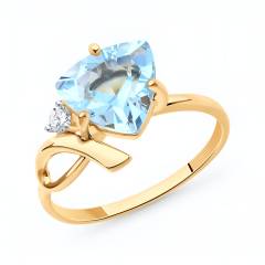 Кольцо из золота с топазом и фианитом