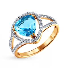 Кольцо из золота с топазом и фианитами