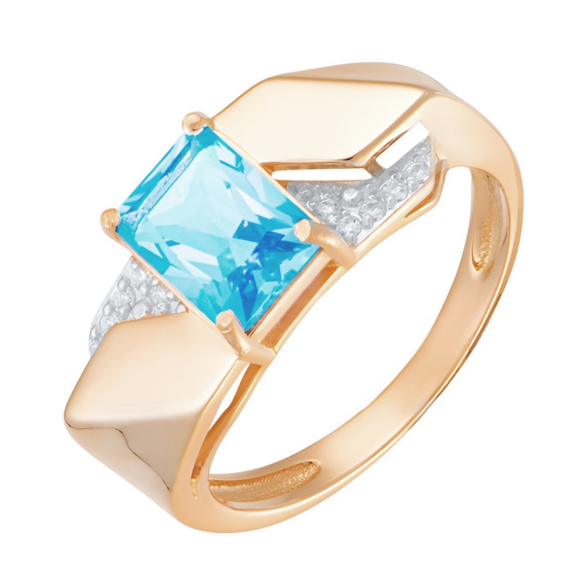 Кольцо из золота с топазом Swiss и фианитами