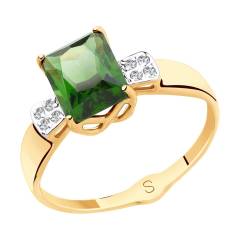 Кольцо из золота с ситаллом турмалин и фианитами