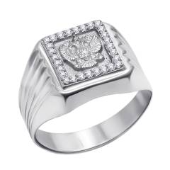 Кольцо-печатка из серебра с фианитами