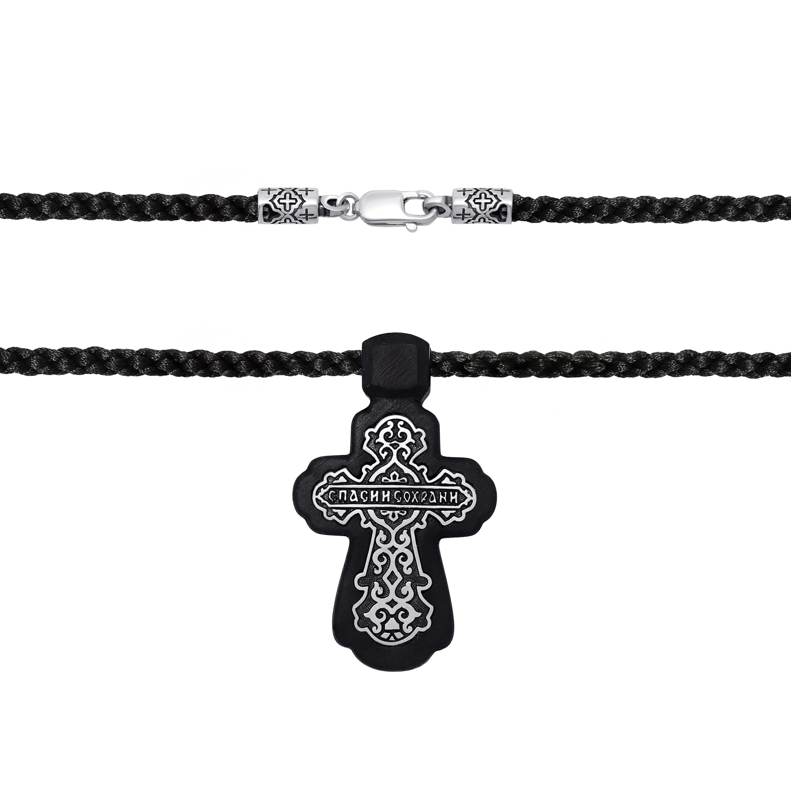 Основа креста выполнена из черного дерева Граб, вставки из серебра 925 пробы с чернением.