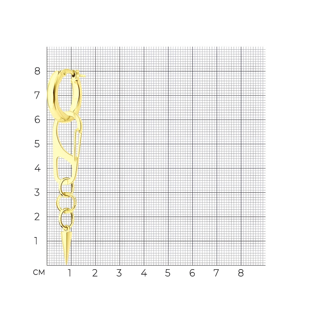 Одиночная серьга-трансформер из серебра, покрытие Вермель золото 999 пробы