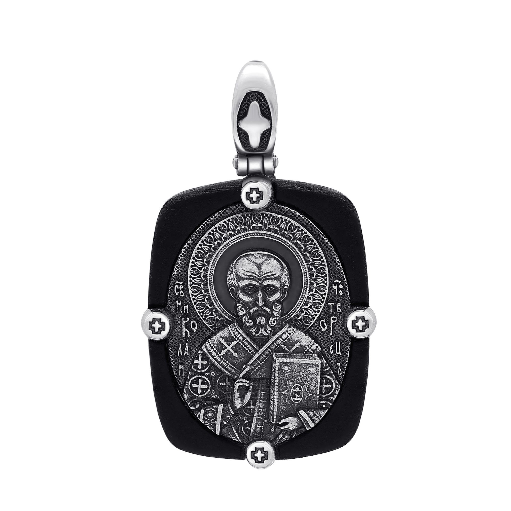 Подвеска из дерева с серебряными вставками и образом "Николай Чудотворец"