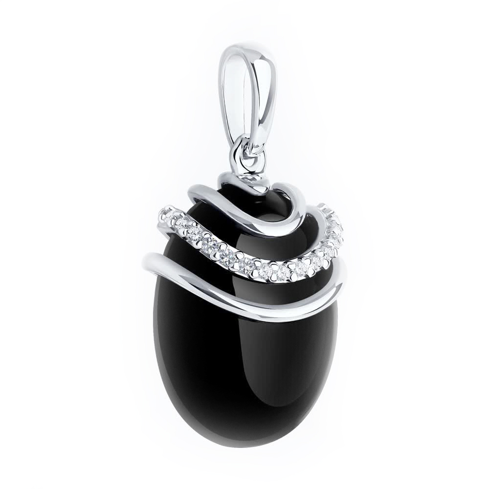 Подвеска из серебра с агатом и фианитами