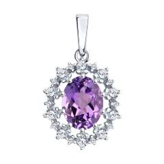 Подвеска из серебра с аметистом и фианитами