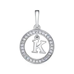 Подвеска из серебра с фианитами "К"