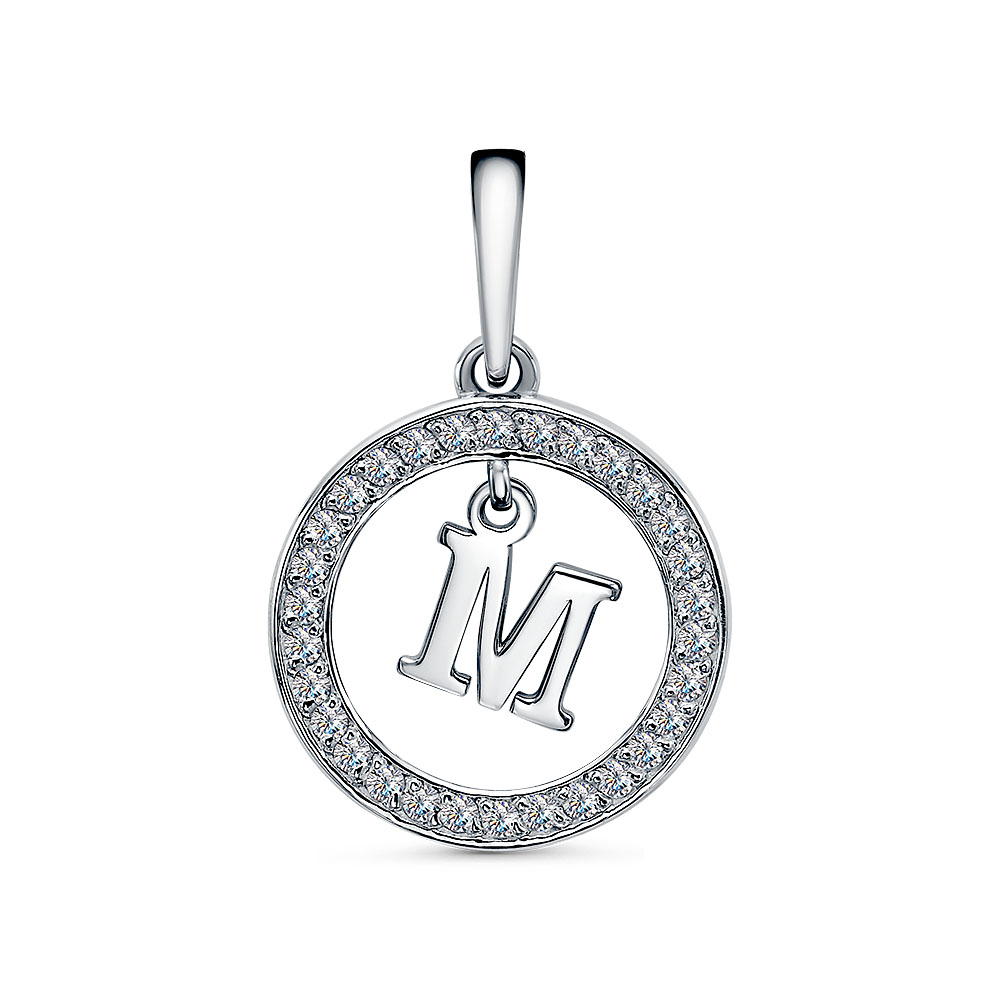 Подвеска из серебра с фианитами "М"