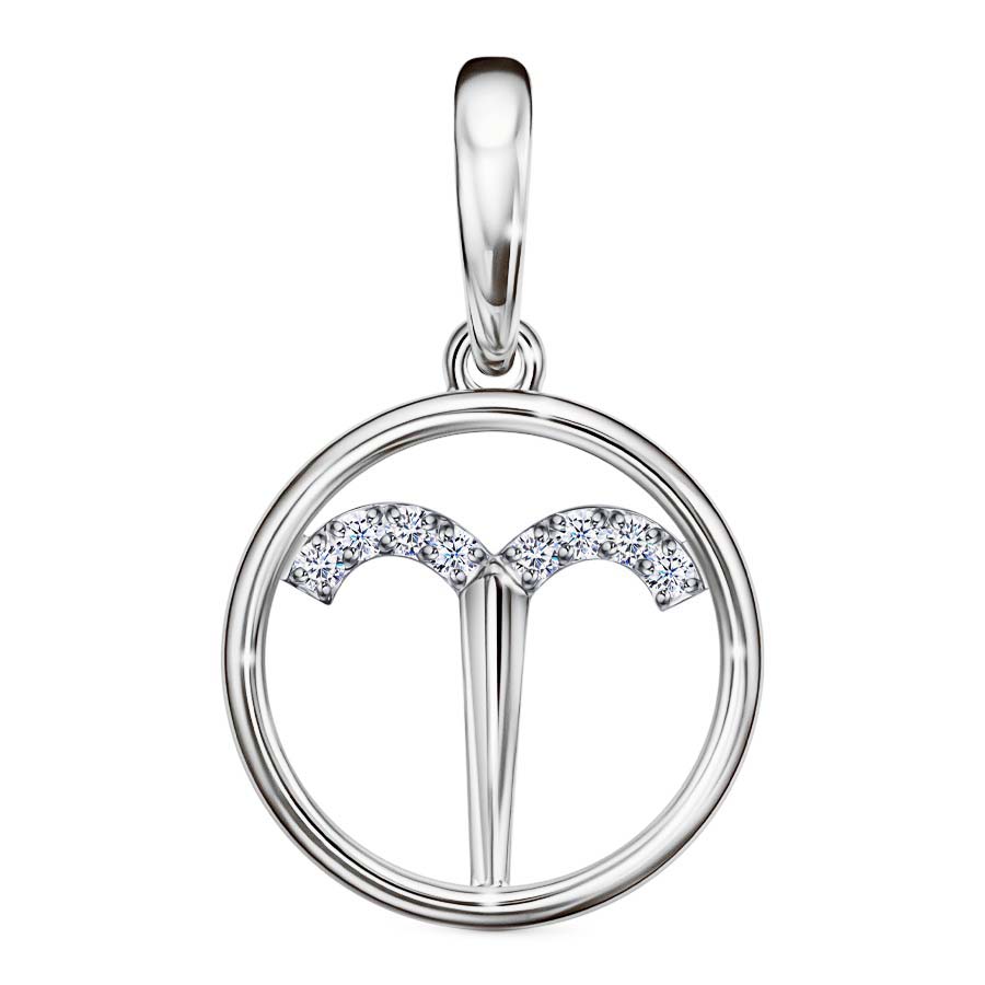 Подвеска из серебра с фианитами "Знак зодиака Овен"