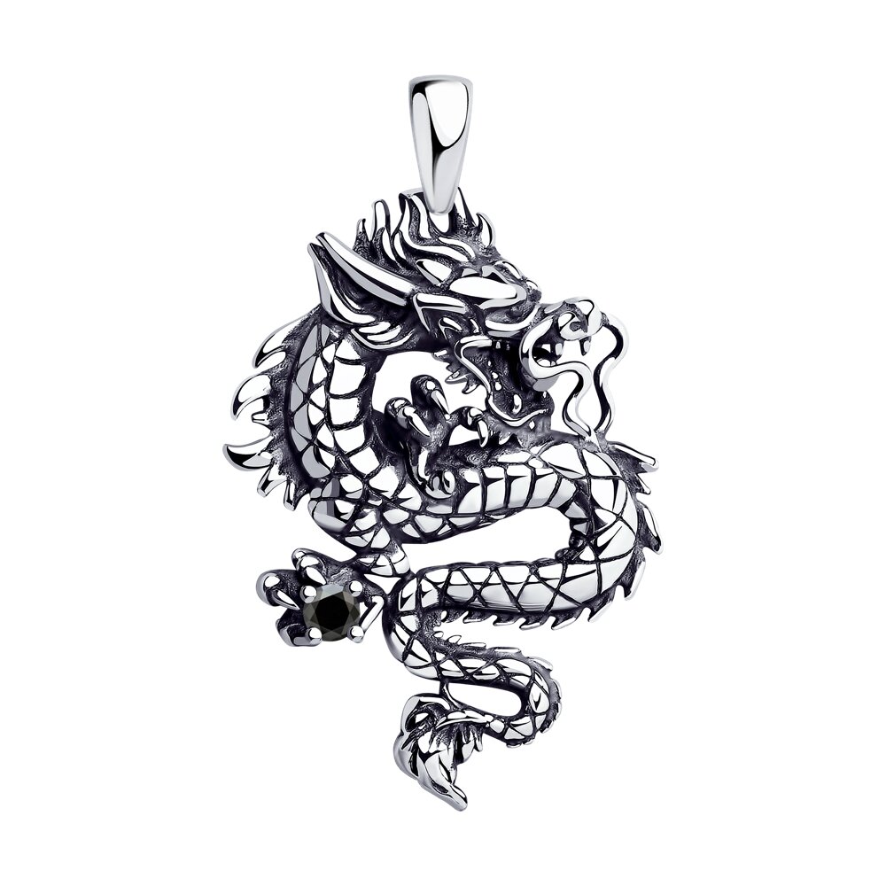 Подвеска из серебра с чернением и фианитом "Дракон"