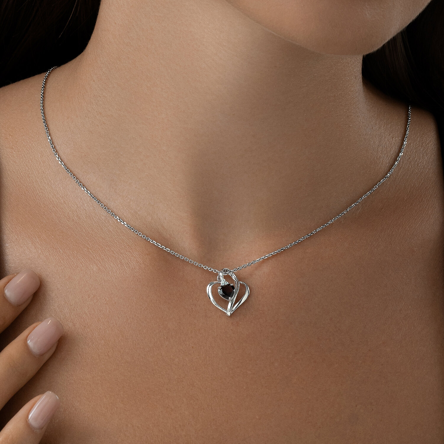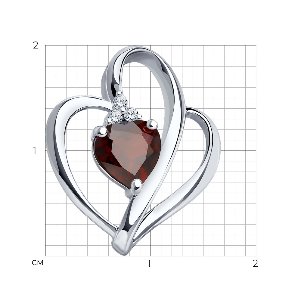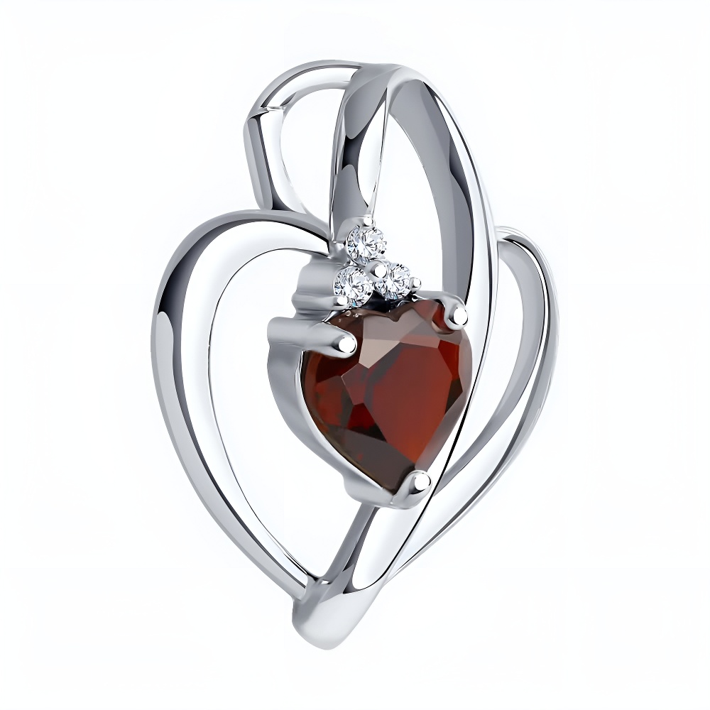 Подвеска из серебра с гранатом и фианитами