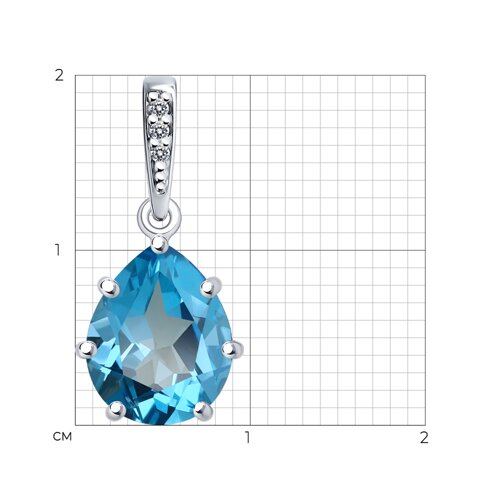 Подвеска из серебра с топазом Swiss и фианитами