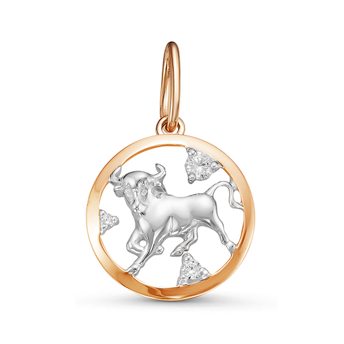 Подвеска из золота с фианитами "Знак зодиака Телец"