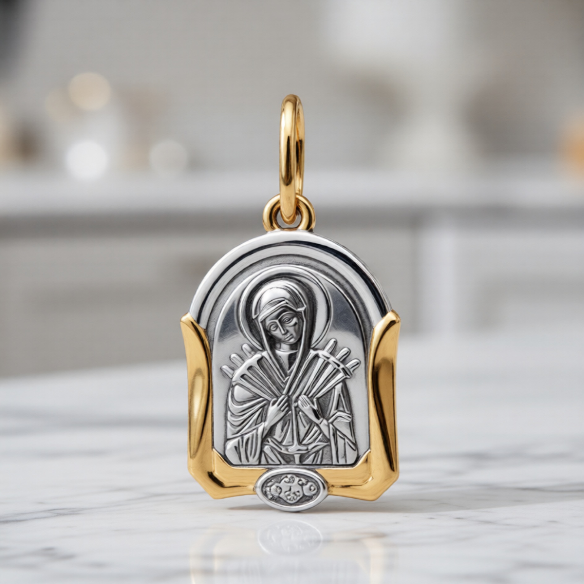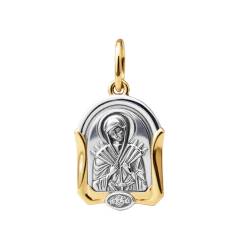 Подвеска из золота с фианитом и образом Божьей Матери "Семистрельная"