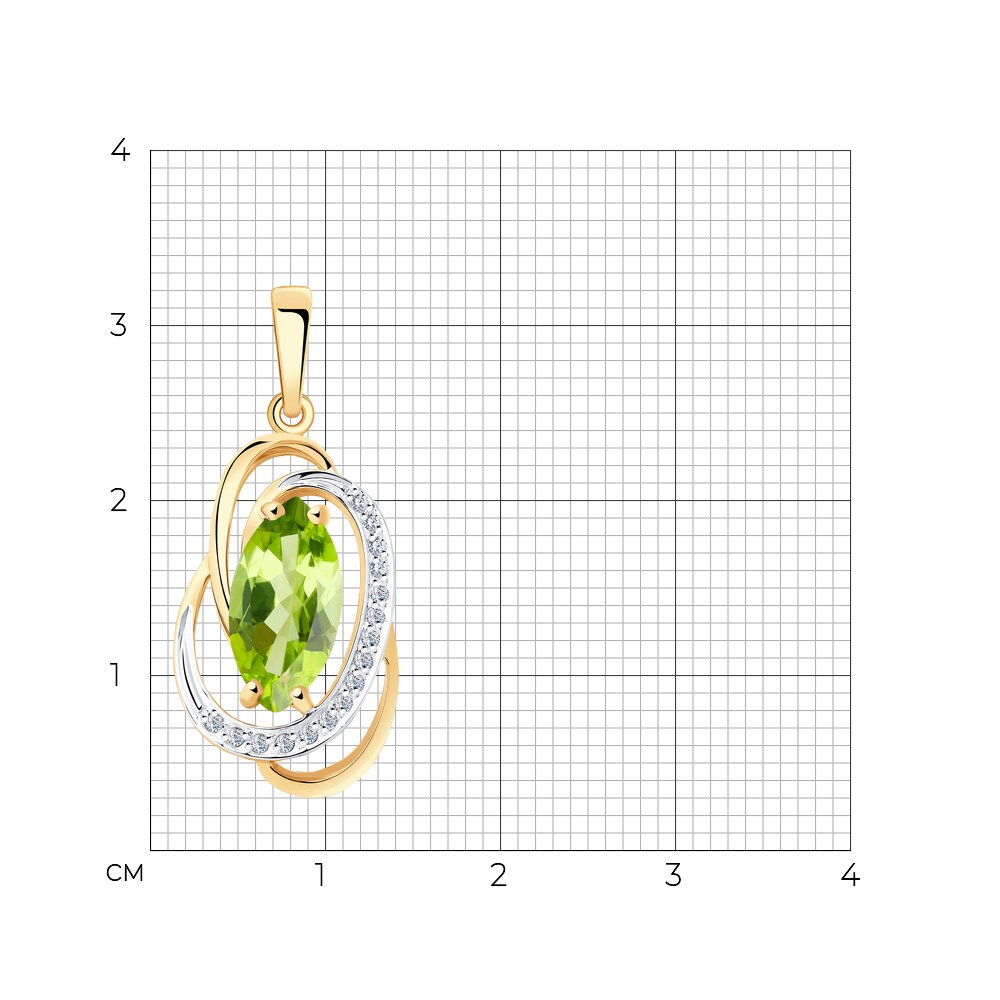 Подвеска из золота с хризолитом и фианитами