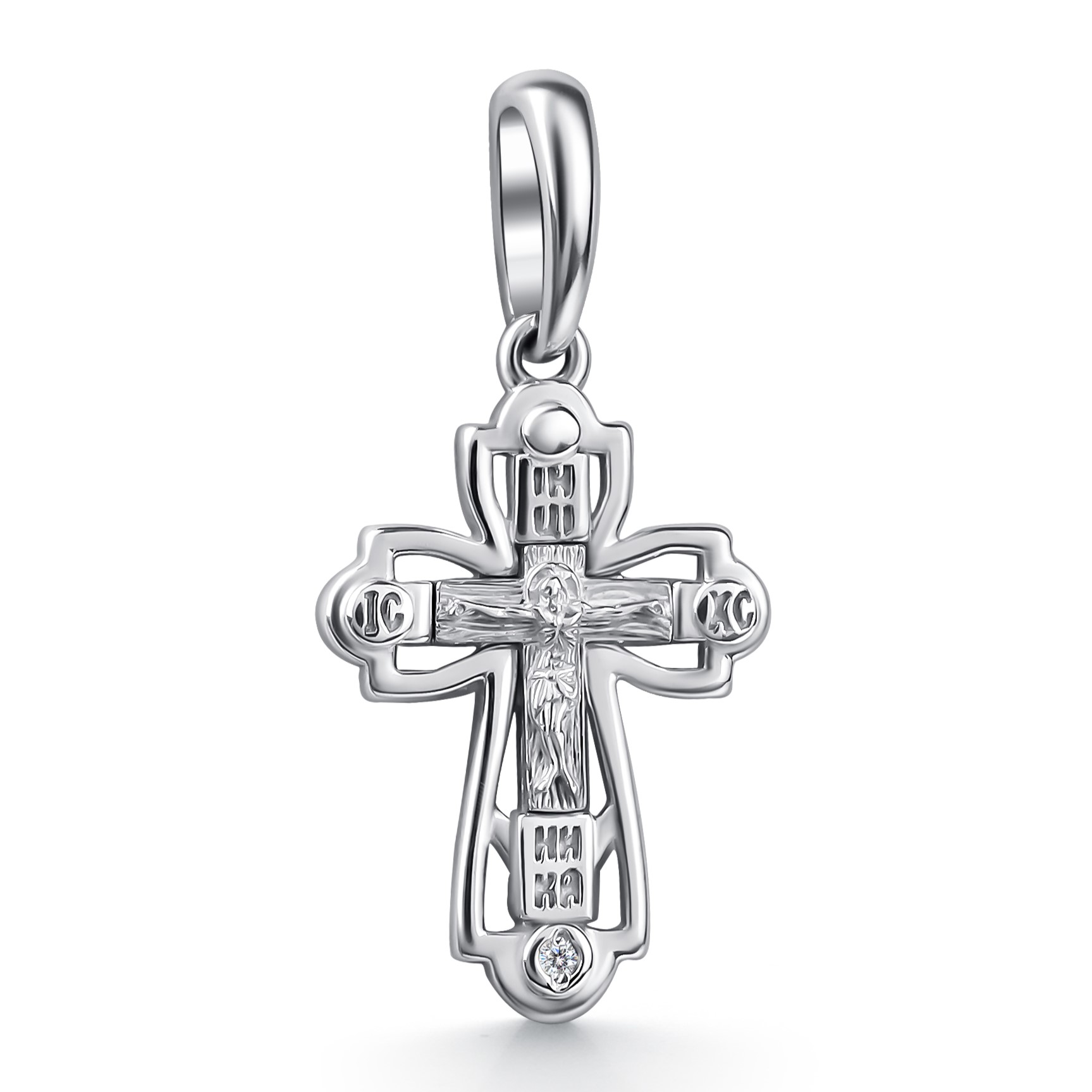 Подвеска-крест из серебра с бриллиантом