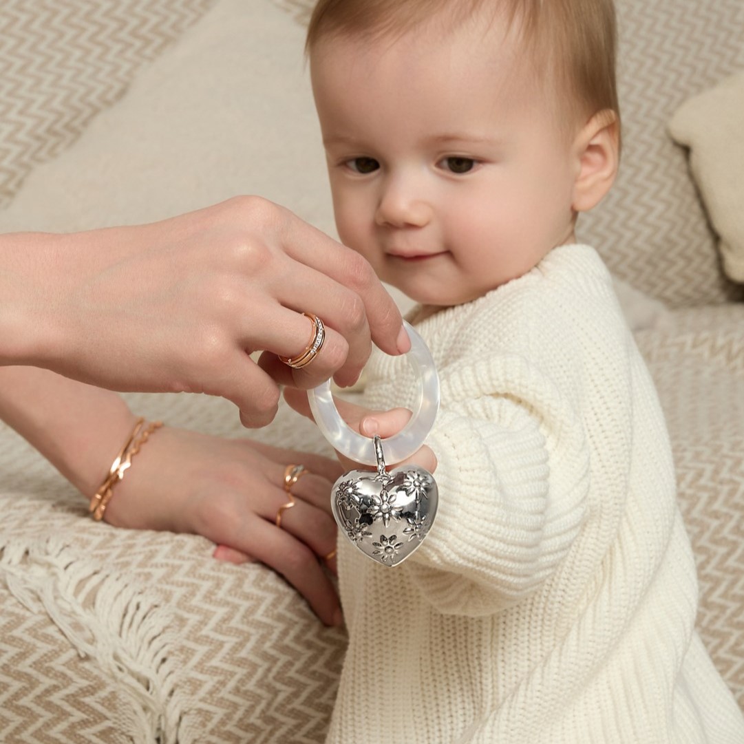 Погремушка "Сердце с цветами" на кольце: