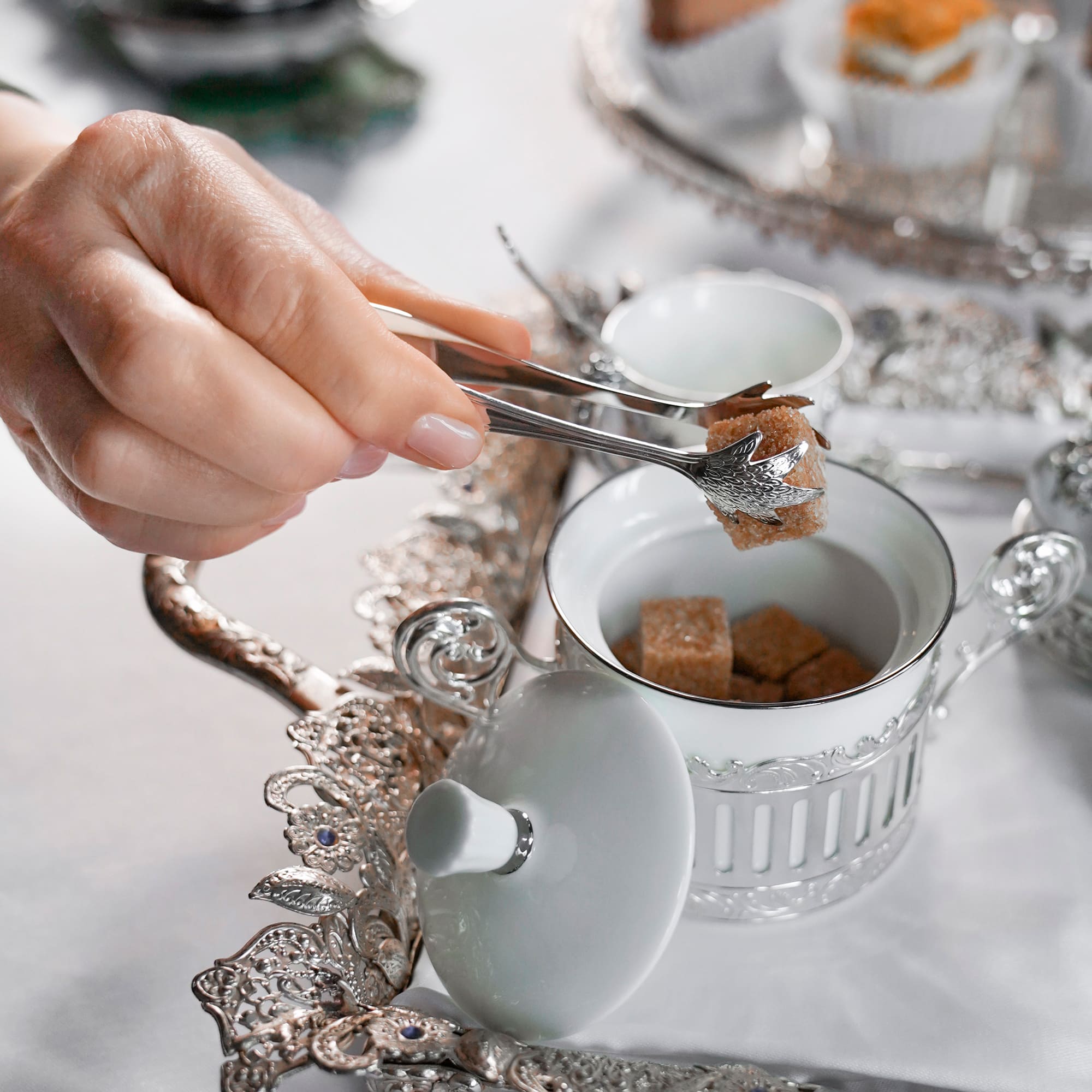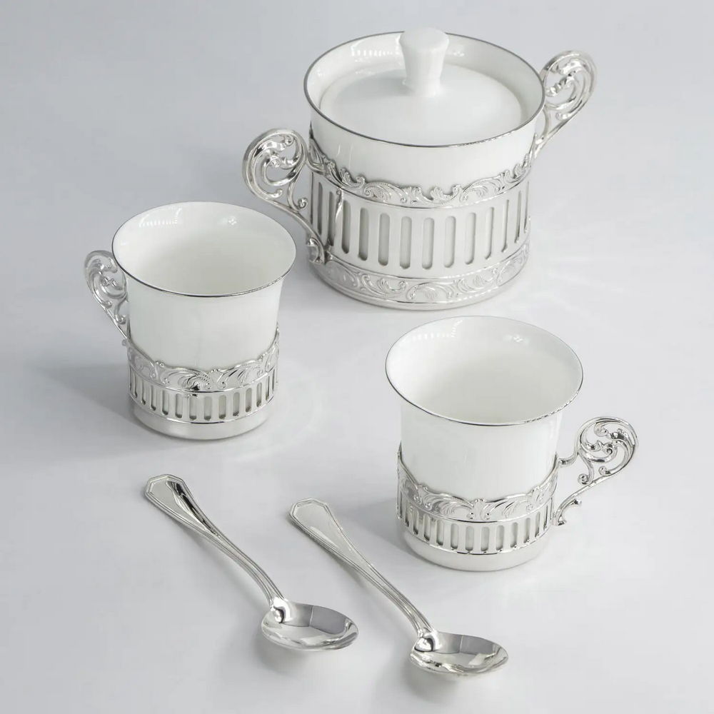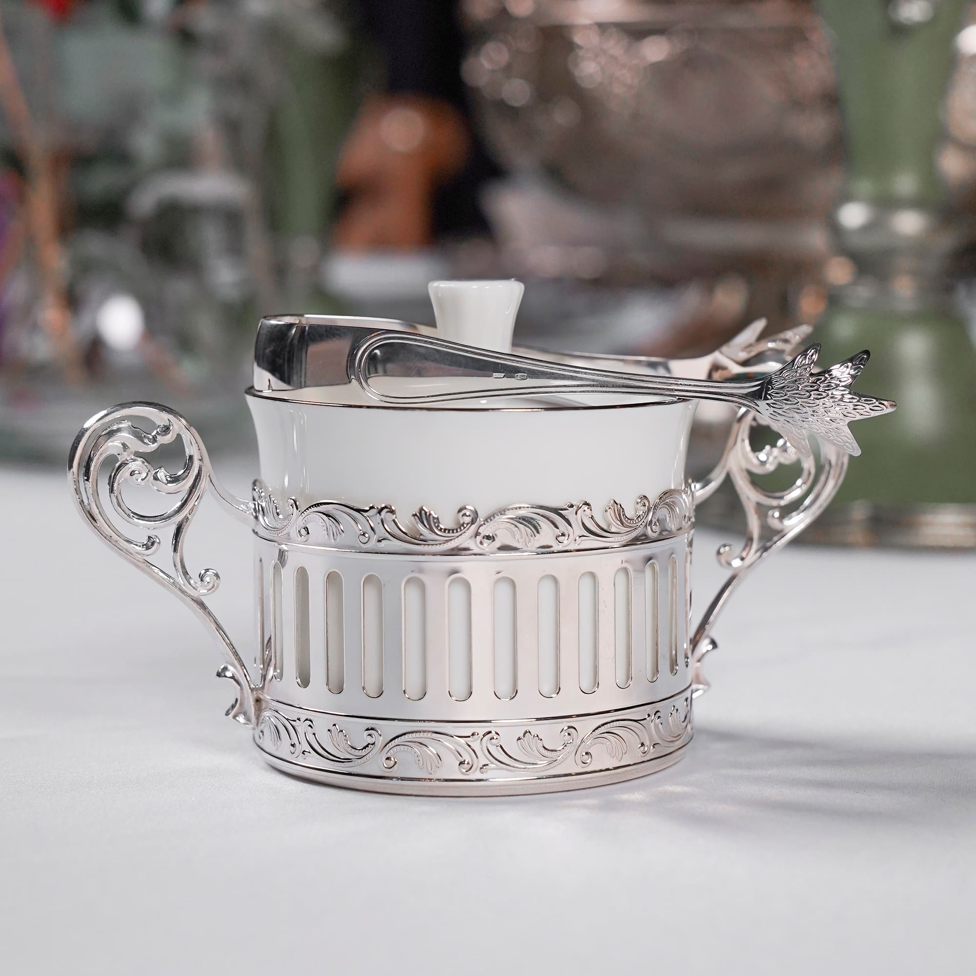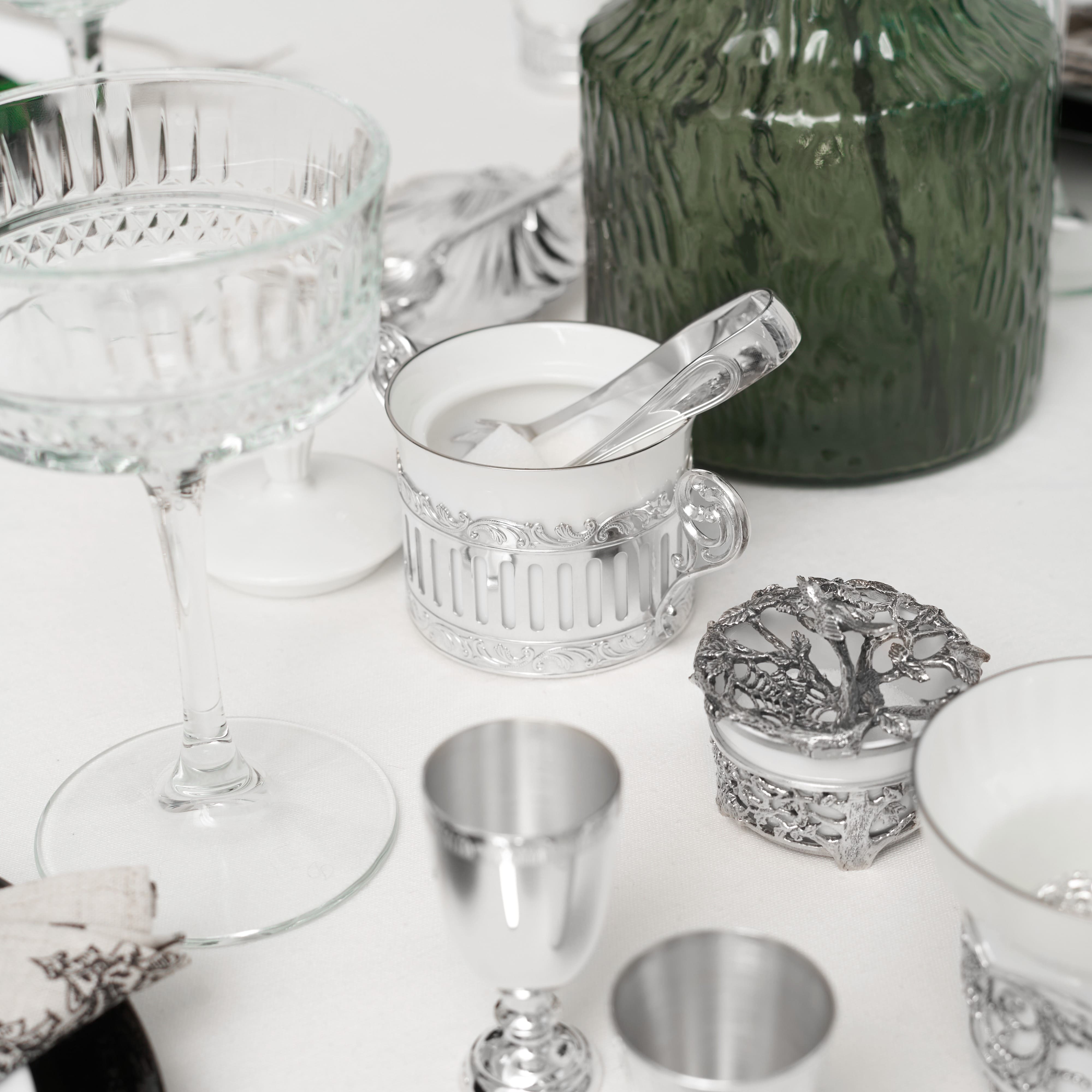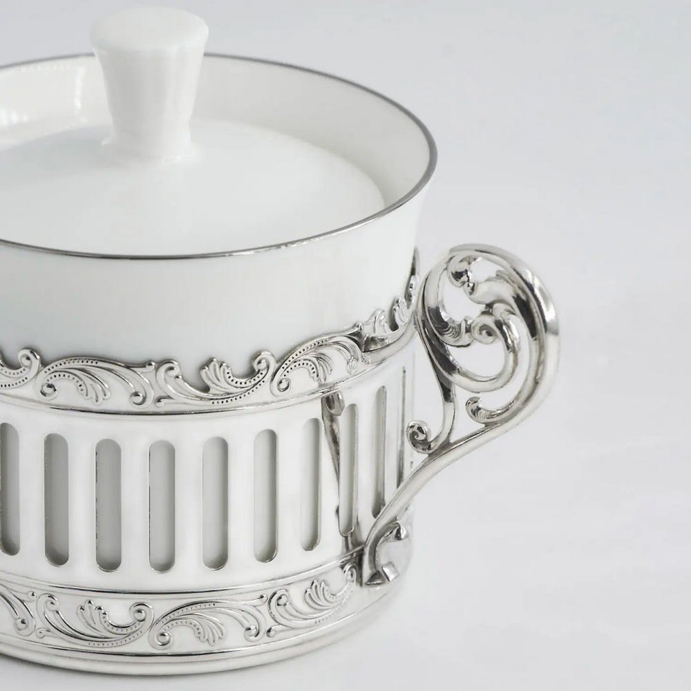 Сахарница из фарфора с серебряной подставкой "Богема"