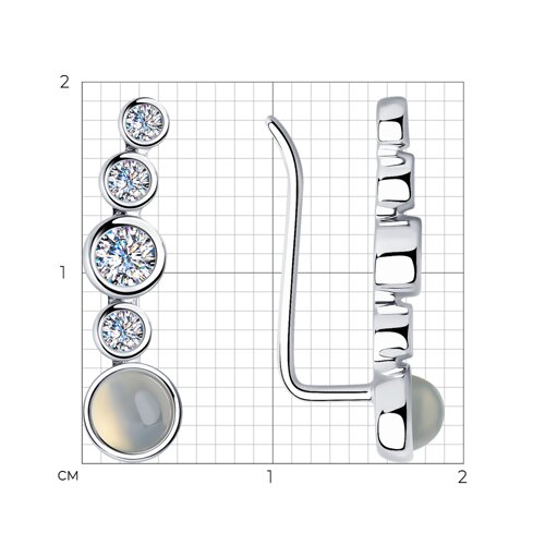 Серьги-эльфы из серебра с лунными камнями и фианитами
