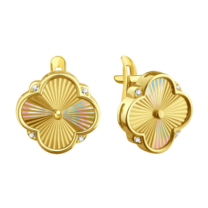 Серьги из лимонного золота с алмазной гранью и фианитами