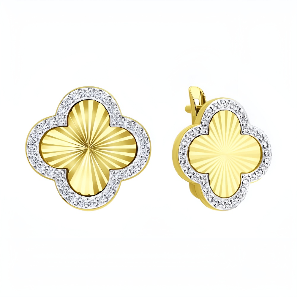 Серьги из лимонного золота с алмазной гранью и фианитами