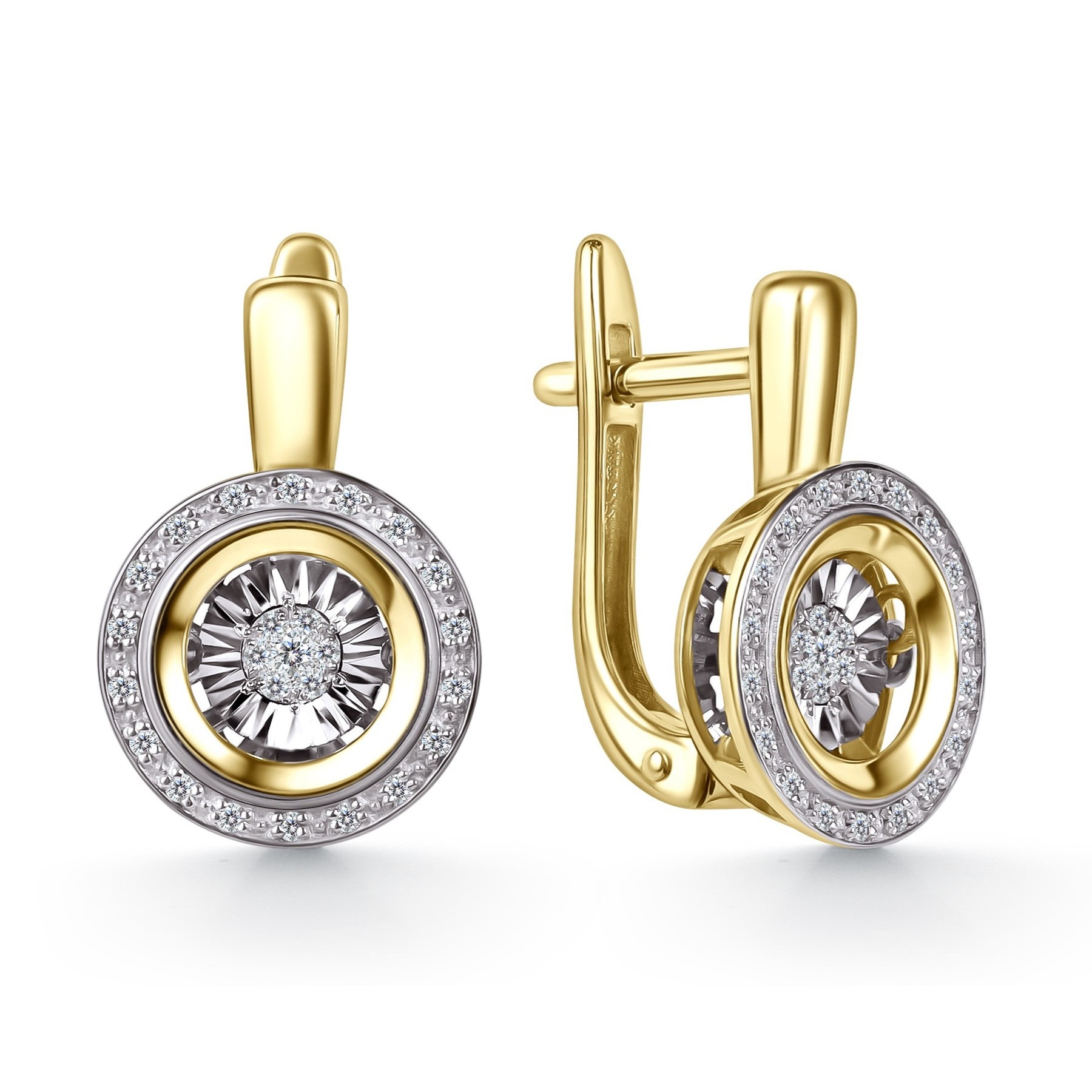 Серьги из лимонного золота с бриллиантами и "танцующими" бриллиантами