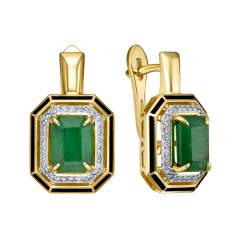 Серьги из лимонного золота с "танцующими" бриллиантами и черными бриллиантами