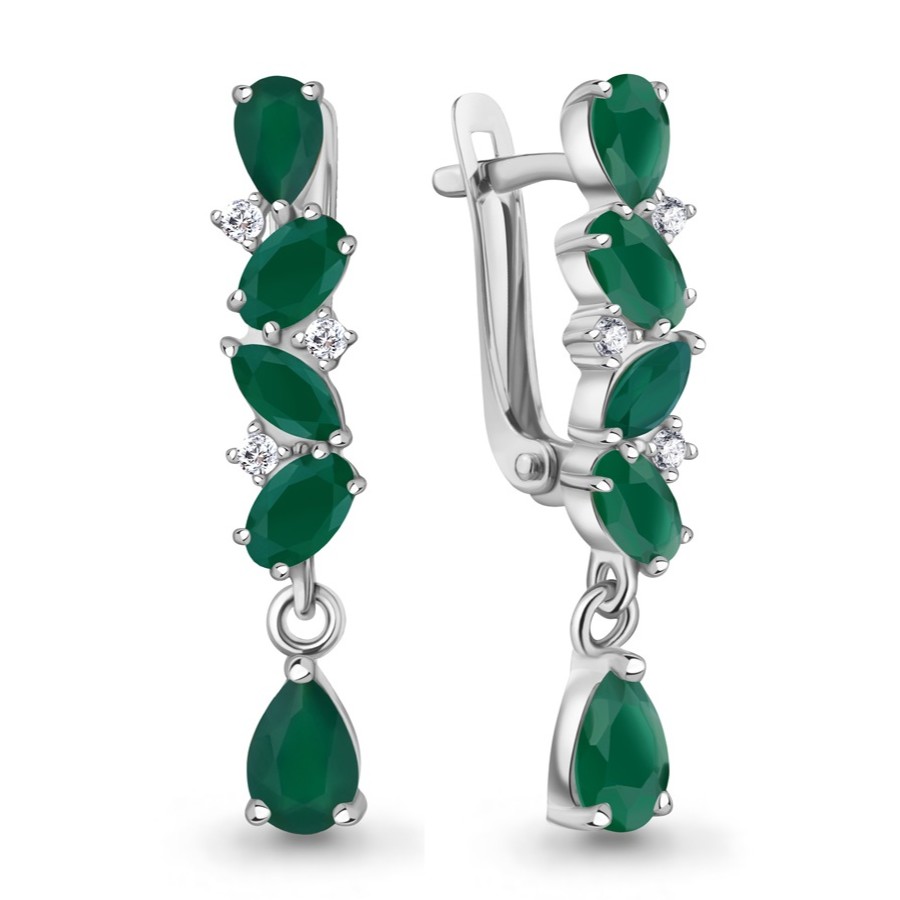 Серьги из серебра с агатами и фианитами