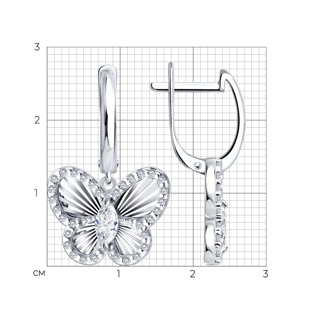 Серьги из серебра с алмазной гранью и фианитами