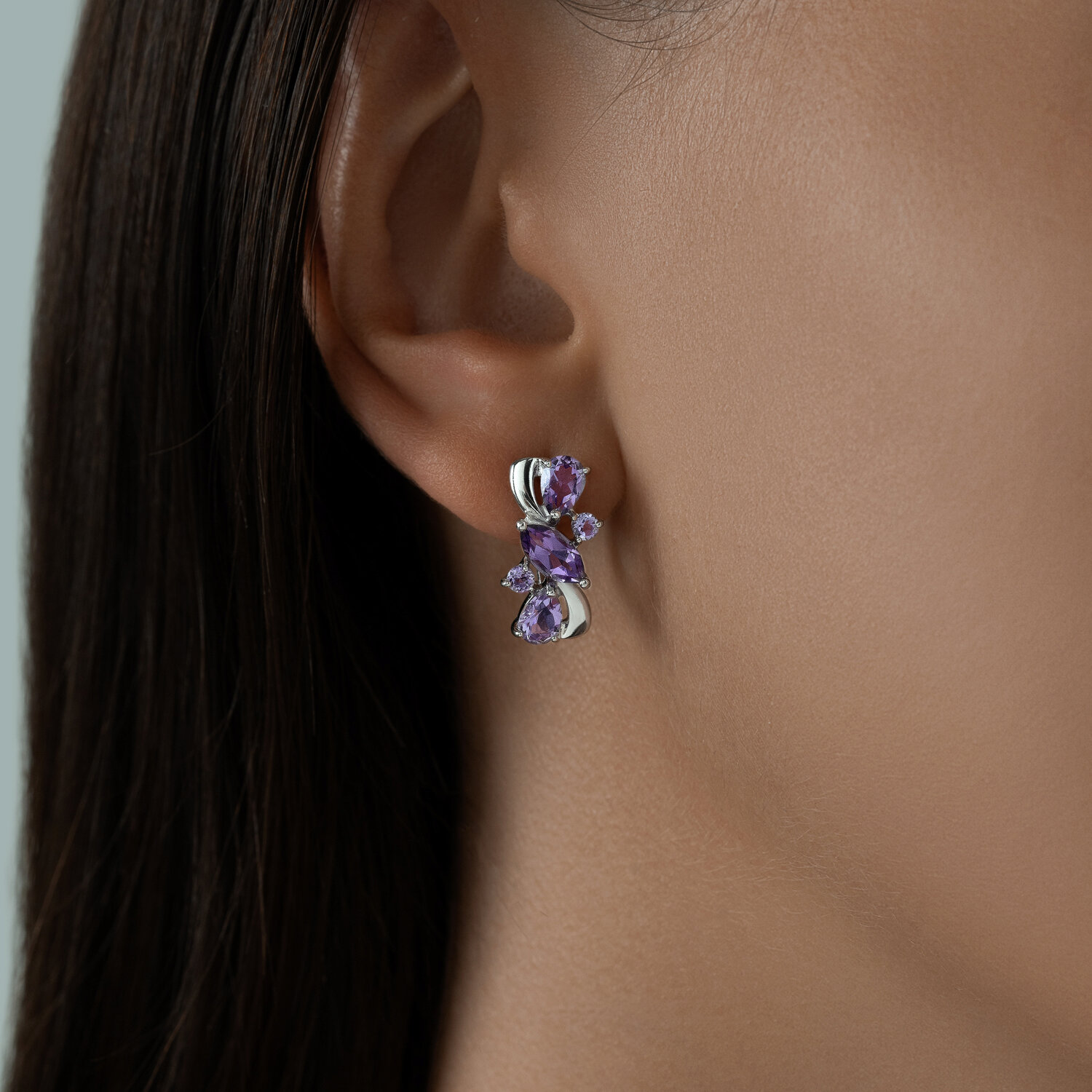 Серьги из серебра с аметистами