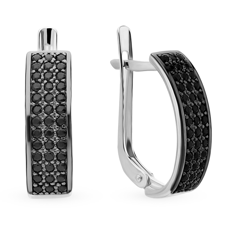 Серьги из серебра с черными фианитами