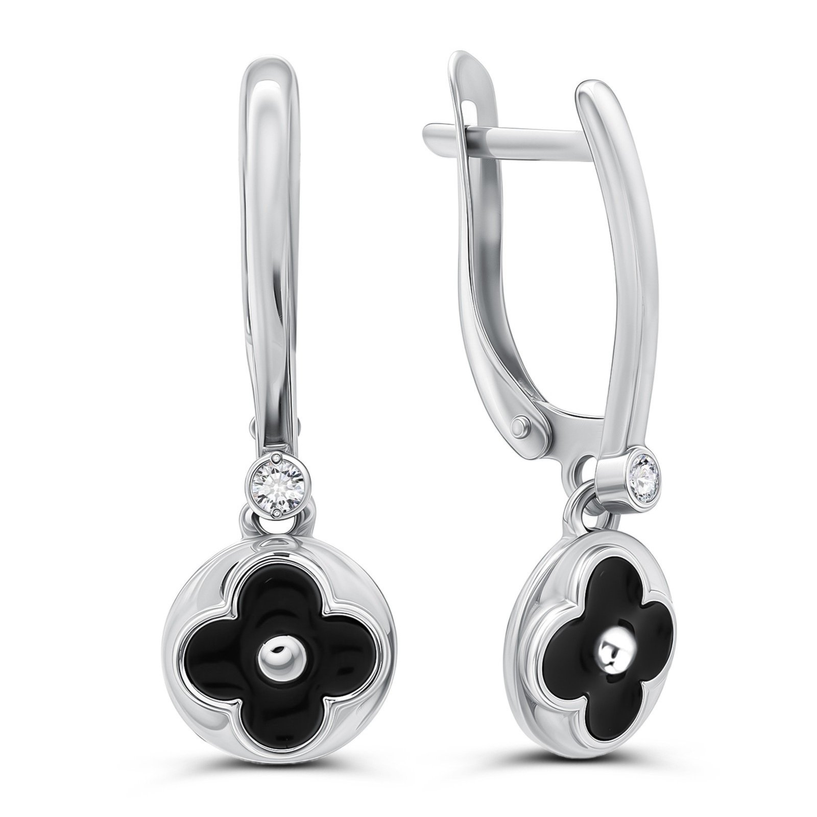 Серьги из серебра с эмалью и фианитами