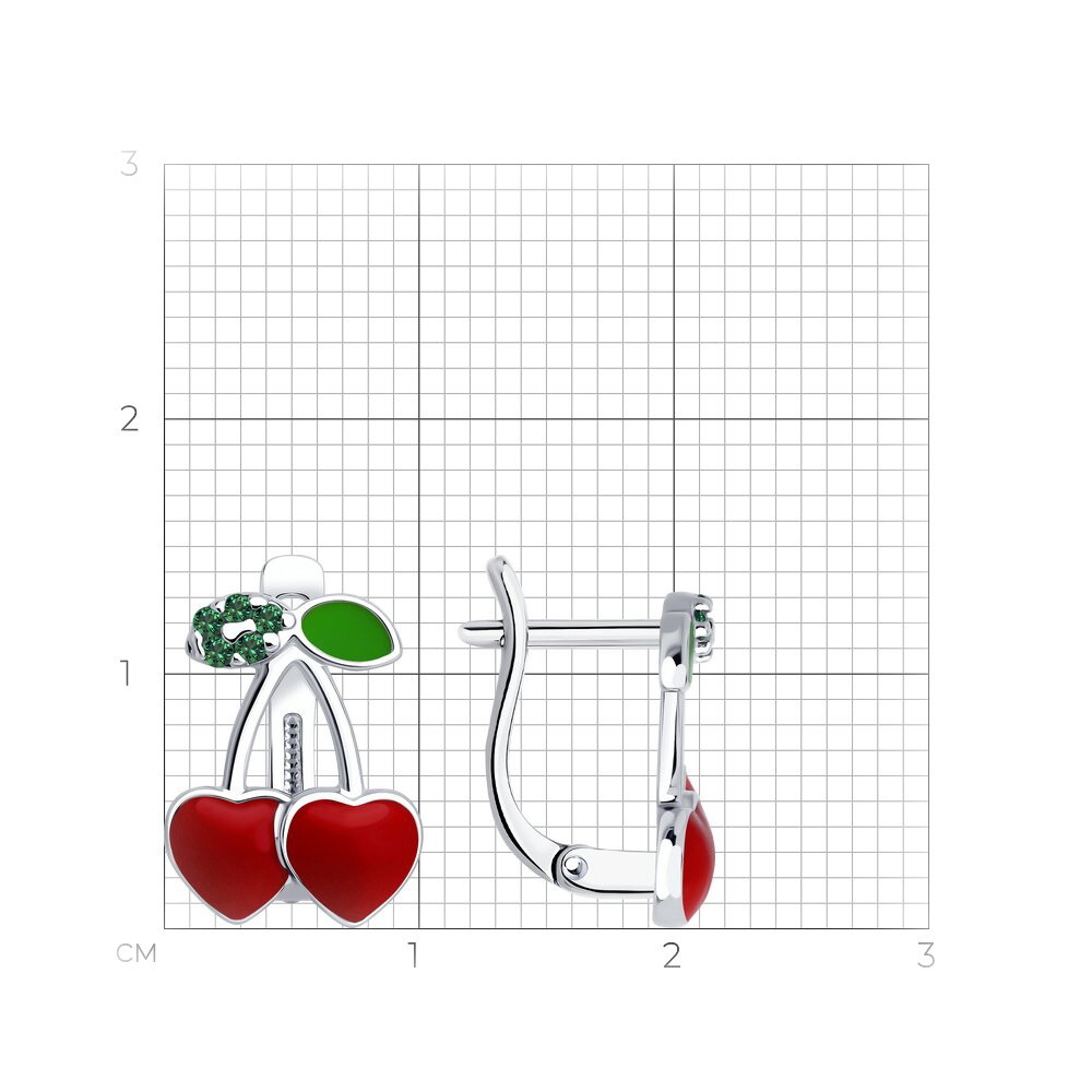 Серьги из серебра с эмалью и фианитами