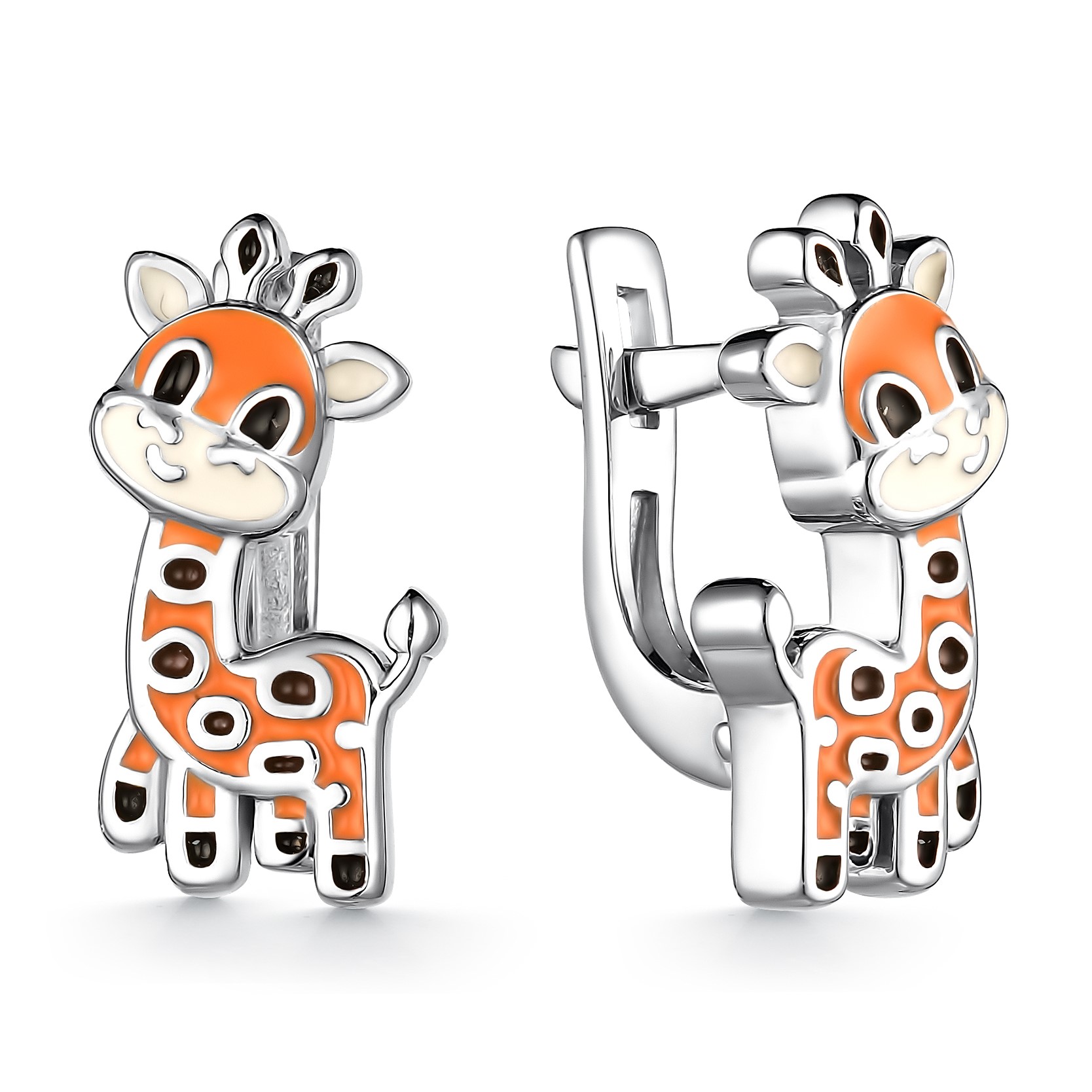 Серьги из серебра с эмалью "Жирафы"