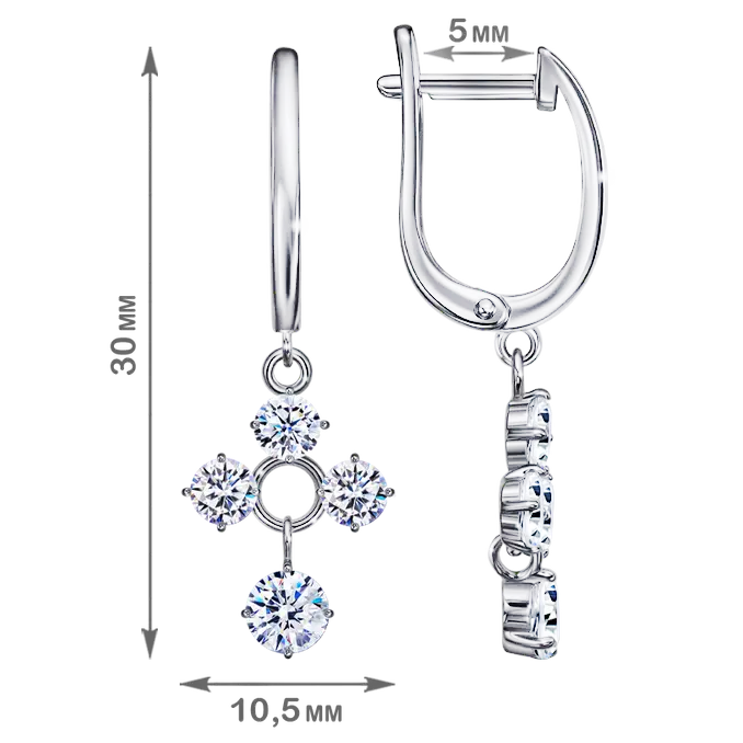 Серьги из серебра с фианитами