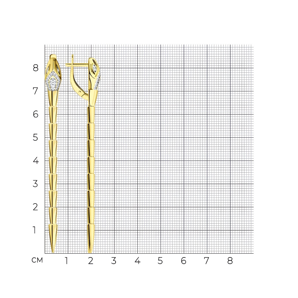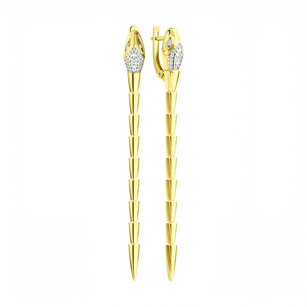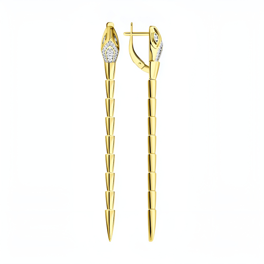 Серьги из серебра с фианитами, покрытие Вермель золото 999 пробы