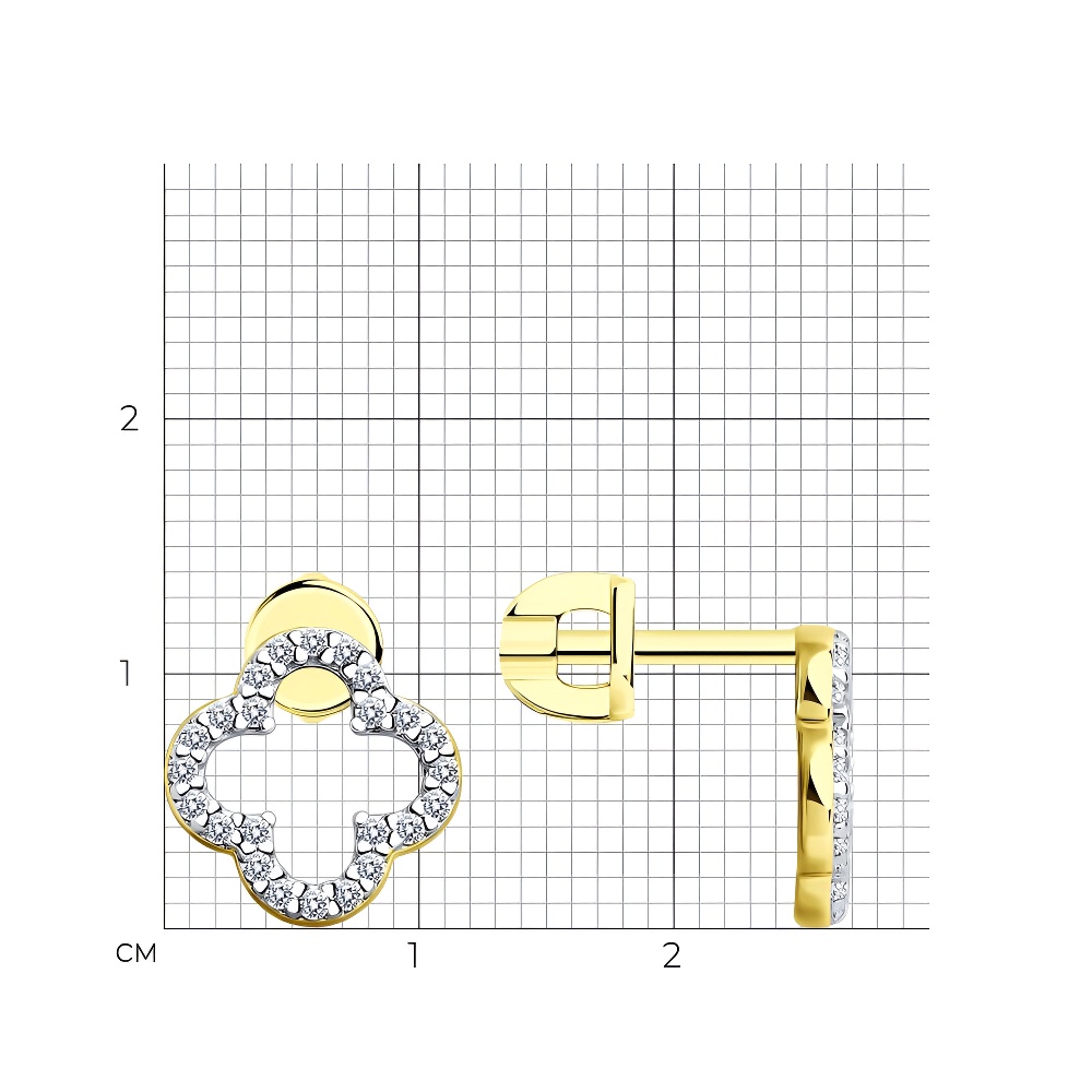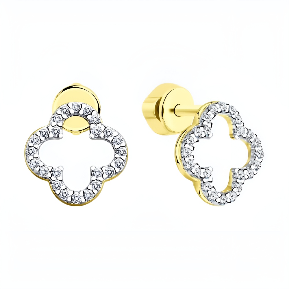 Серьги из серебра с фианитами, покрытие Вермель золото 999 пробы