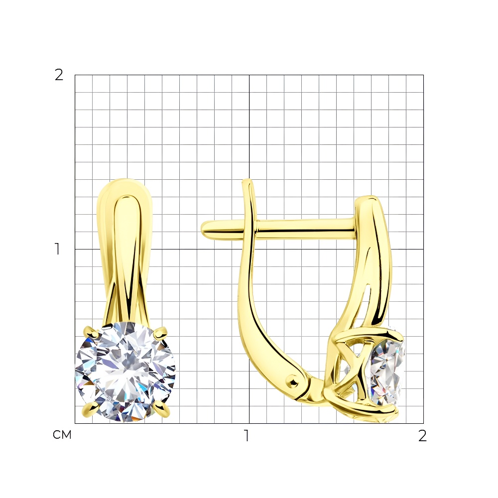 Серьги из серебра с фианитами, покрытие Вермель золото 999 пробы