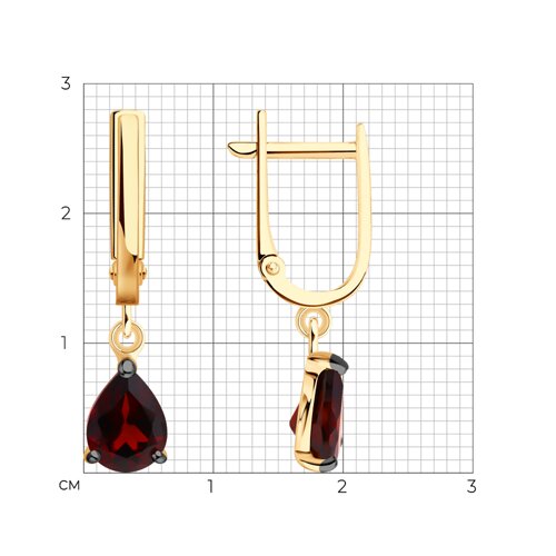 Серьги из серебра с гранатами и фианитами