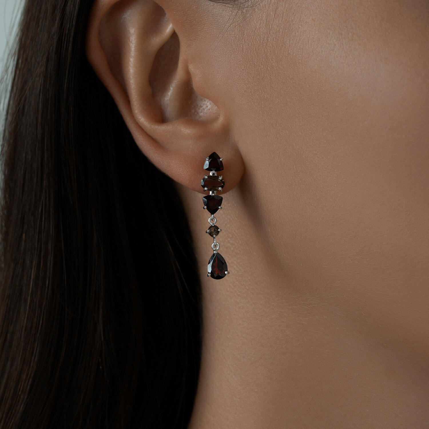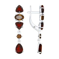 Серьги из серебра с гранатами и раухтопазами