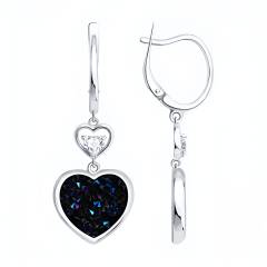 Серьги из серебра с кристальной тканью и фианитами
