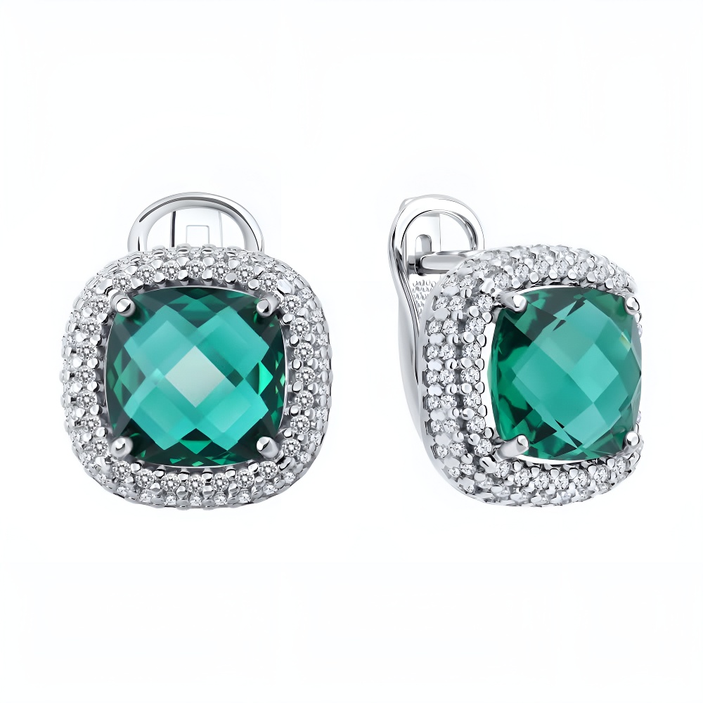 Серьги из серебра с кварцами и фианитами
