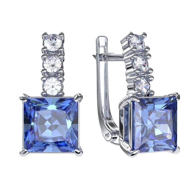 Серьги из серебра с кварцами и фианитами