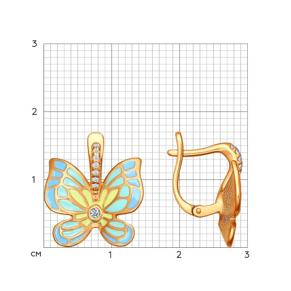 Серьги из серебра с позолотой, эмалью и фианитами